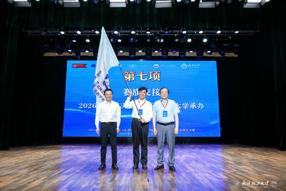 闭幕式现场公布了国赛获奖名单,并进行了庄严的赛旗交接仪式。大赛创始人、华中科技大学吴昌林教授,南昌大学副校长吴丹,以及我校校长董仕节共同完成赛旗交接。董仕节代表学校向全国兄弟院校和机械工程学子发出热情邀请,欢迎2026年相聚我校,共襄赛事盛会。