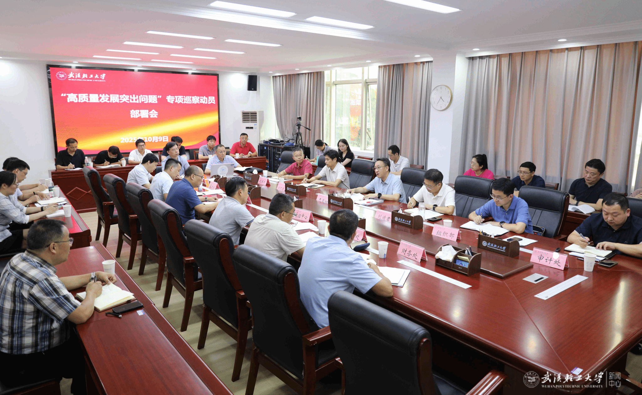 10月9日下午,学校在1号会议室召开二届党委“高质量发展突出问题”专项巡察工作动员部署会。校党委书记、巡察工作领导小组组长严冀钢出席会议并作动员讲话,派驻纪检监察组组长、党委常委、纪委书记、巡察工作领导小组副组长刘靖君主持会议。校纪委综合室、巡察办、组织部、审计处主要负责人,巡察组全体成员和被巡察单位中层干部参加会议。