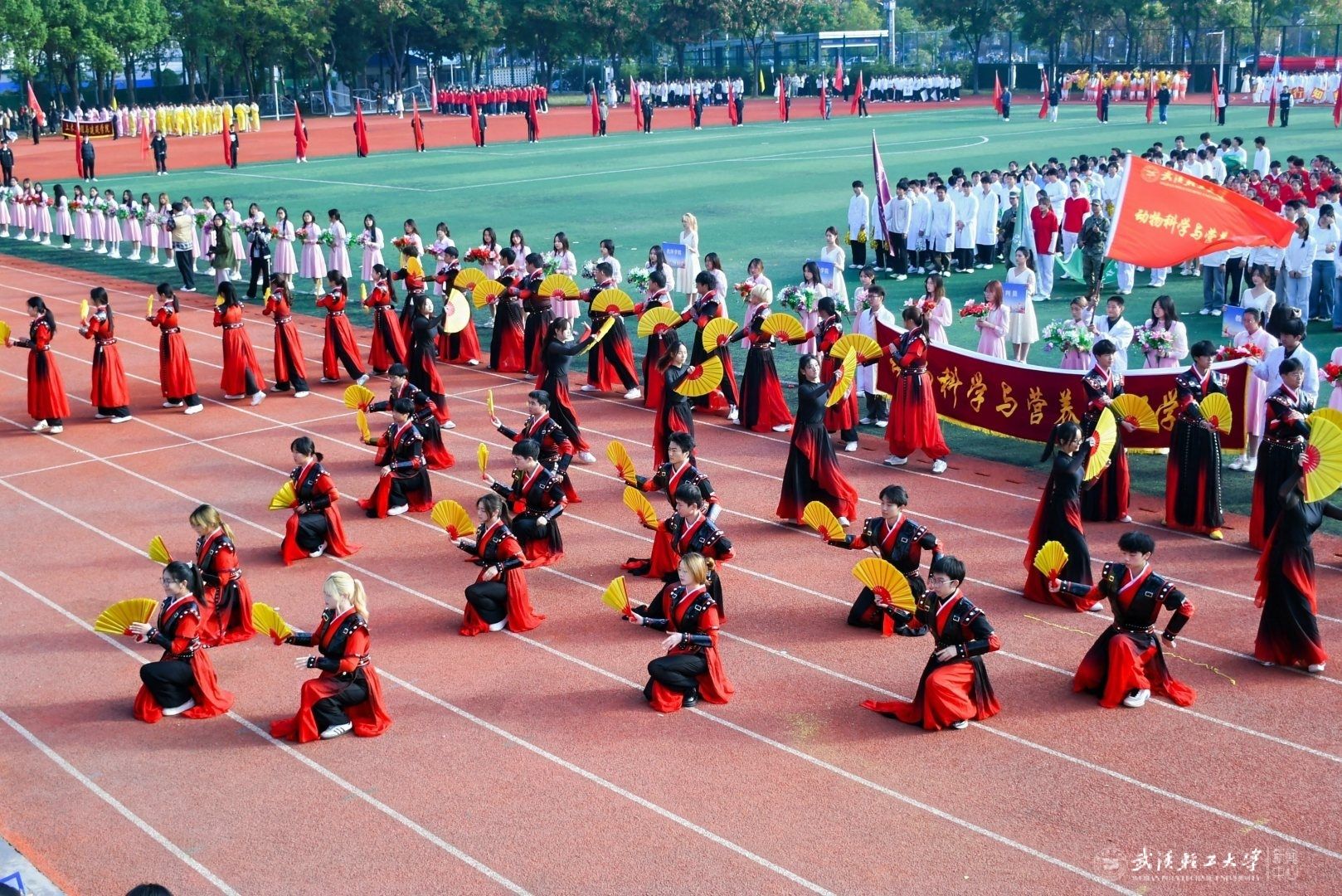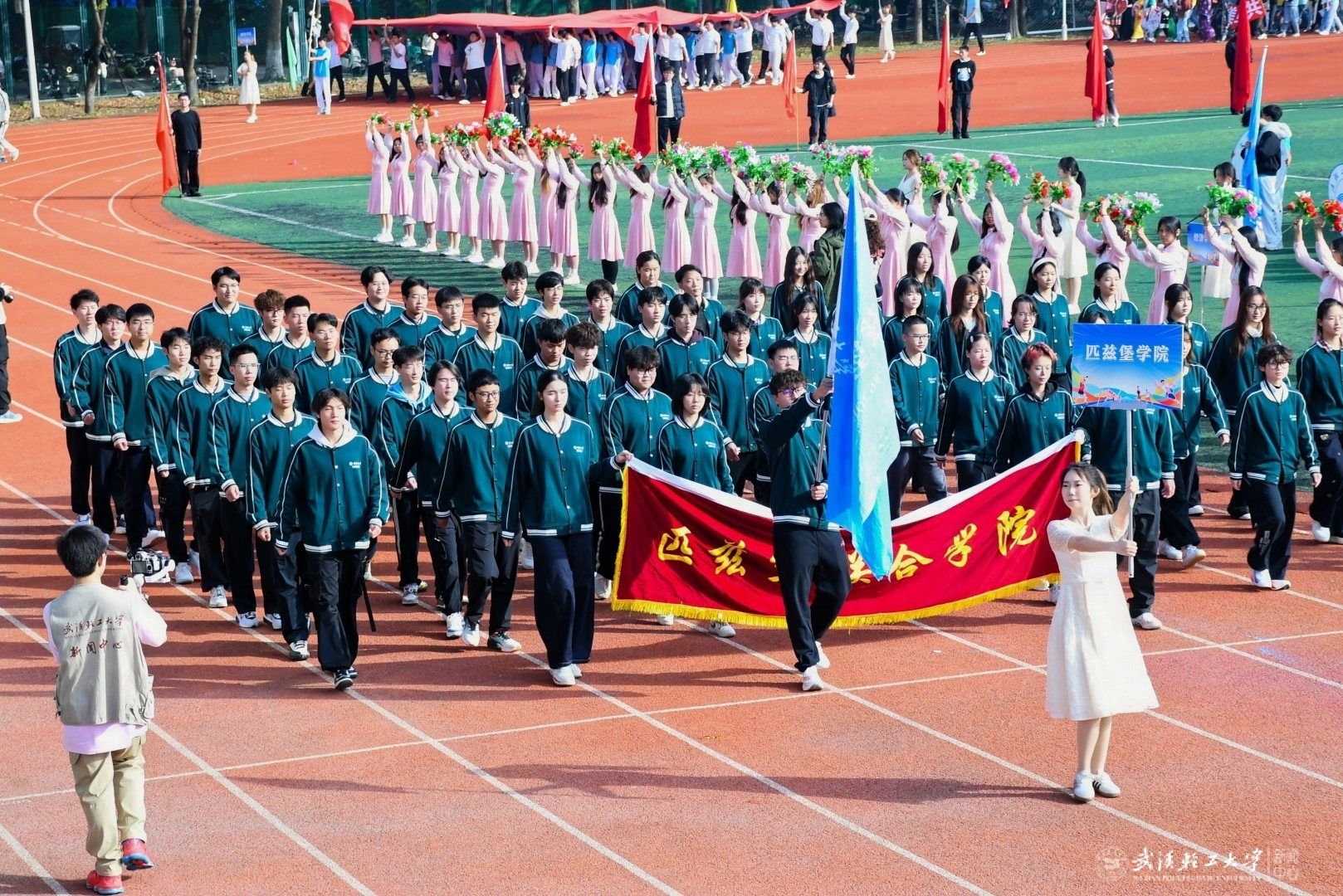 入场式上,伴随着慷慨激昂的《运动员进行曲》,23个方队精神抖擞、意气风发地依次走过主席台。“轻工优选”方队高擎16家校企联名标识,彰显学校聚焦“大食品大营养大健康”领域,做大做强“轻工优选”行业品牌集群的决心;食品学院方队以跨越时空的表演,诠释践行“民以食为天”的使命,把论文写在祖国大地上,把成果送进千家万户的担当;化环学院方队手持蓝绿绸带,展现探索科学奥秘,践行“绿水青山就是金山银山”的生态追求;动科学院方队舞动传统响扇,刚柔并济,展现秉承“农工相融、笃学致用”的理念、再谱新篇的昂扬风貌;电气学院方队人形机器人和机器狗科技助阵,生动演绎从电力工程到智能控制的创新图景;土建学院方队以钢筋般的挺拔身姿,融合严谨与活力,诠释“厚土承德,菁木建华”的青春誓言;医学院方队白衣执志、步履从容,彰显传承红医精神、护佑人民健康的崇高理想;硒产业学院将“永远跟党走”刻进青春坐标,展现扎根硒产业沃土,服务乡村振兴的坚定信念。