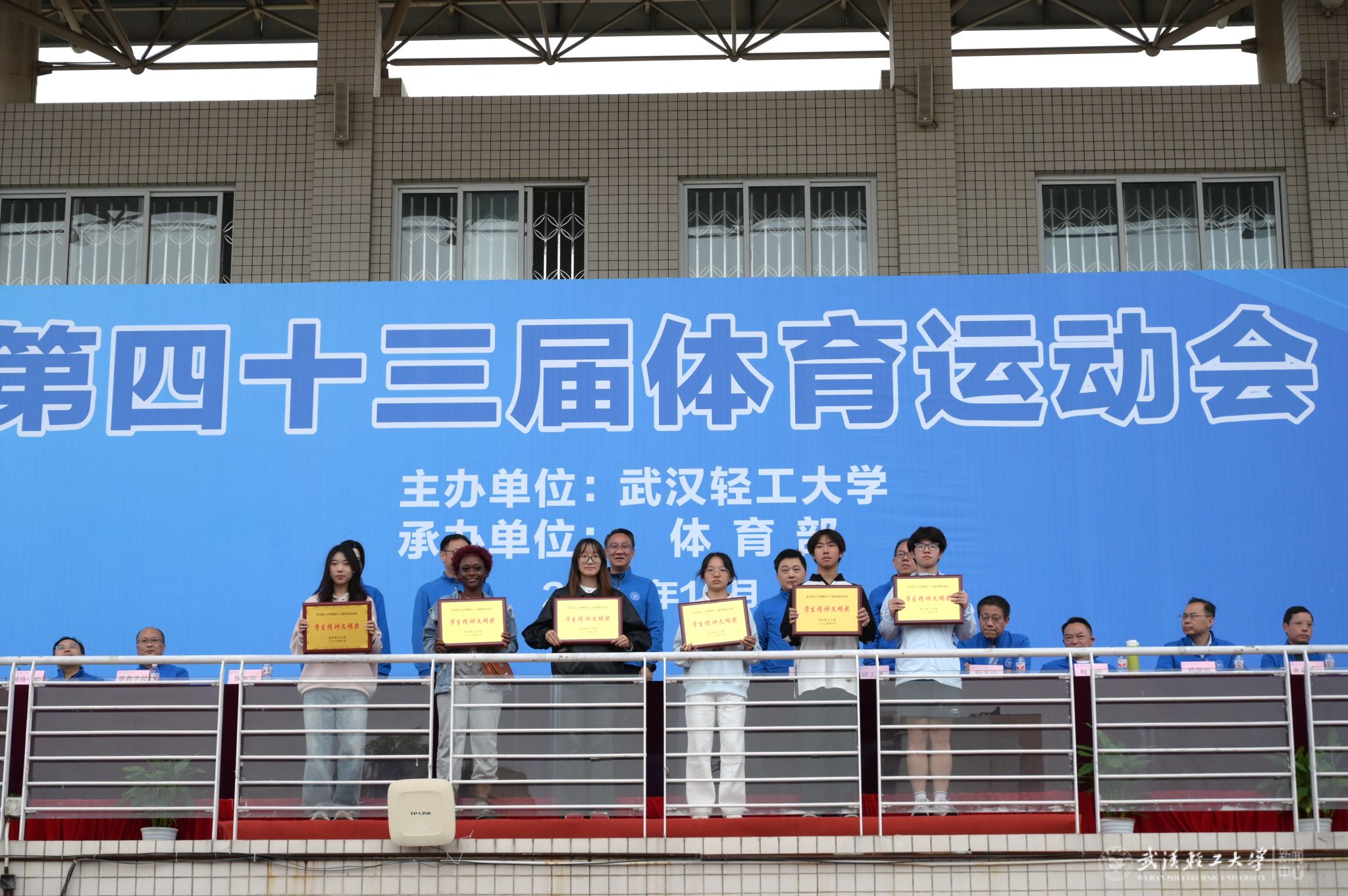 会上宣读了团体总分成绩及精神文明奖获奖单位。主席台领导为获得学生团体总分第一名至第八名的学院、教工团体总分第一名至第八名的单位、学生精神文明代表队、教工精神文明代表队颁奖。