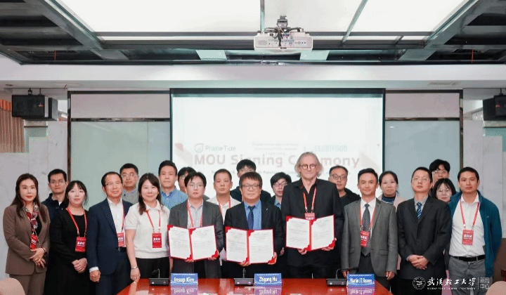 在与会嘉宾的见证下,武汉轻工大学机械工程学院院长胡志刚与加拿大萨斯喀彻温大学Martin J.T. Reaney教授、SEOBI公司CEO Insup Kim签署了国际合作意向书。双方将在粮油食品智能装备研发、人才培养、技术转化等领域深化合作,共同推动行业创新与国际资源整合。