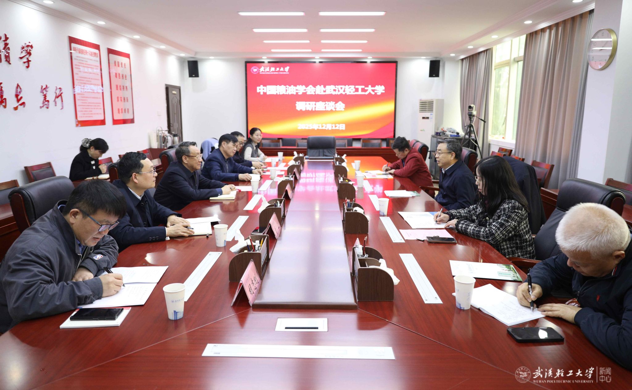 本网讯 12月12日下午,中国粮油学会理事长卢景波、湖北省粮食科技与经济学会会长胡新明等一行来校,围绕科学谋划中国粮油学会2026年工作开展专题调研。校党委书记严冀钢、校友会会长董仕节出席调研座谈会,副校长曾山主持会议。学校党政办负责人,挂靠我校的中国粮油学会粮油食品智能装备分会、油脂分会相关负责人参加会议。