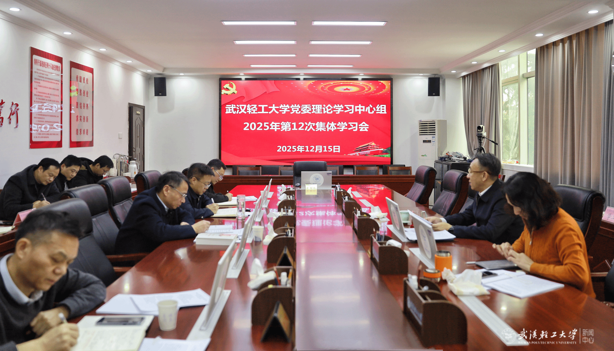 会上,全体校党委领导班子成员围绕深入学习贯彻党的二十届四中全会精神,结合分管工作依次交流了学习体会。校党委常委、副校长侯永清领学《习近平谈治国理政》第五卷有关专题和习近平总书记重要讲话、重要指示批示精神,省纪委监委派驻武汉轻工大学纪检监察组组长、校党委常委、纪委书记刘靖君领学习近平总书记重要文章、重要回信和中共湖北省委十二届十一次全体会议精神。