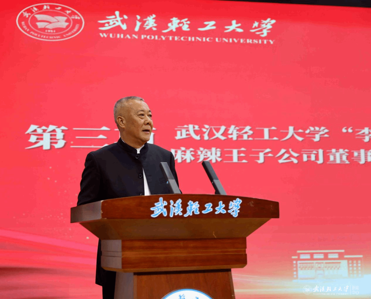 严冀钢致辞,代表学校向长期以来支持基金发展的企业家们致以诚挚谢意,并向获奖师生表示热烈祝贺。他指出,近年来学校积极推动科技创新与产业创新深度融合,着力打造“轻工优选”行业品牌集群,构建了“企业出题、学校答题、联合破题、市场验题”的产学研联合攻关机制。目前,学校已与24家行业龙头企业达成联名合作,持续深化产学研融合,切实推动科研绑在产品上、就业长在产业上,实现科研成果融入柴米油盐、走进千企万户,助力荆楚美味香飘万里、轻工美名远播四方。他希望基金会持续发挥桥梁纽带作用,进一步深化校企协同创新,坚持走科研与产业融合之路,为学校一流学科建设注入强劲动能。