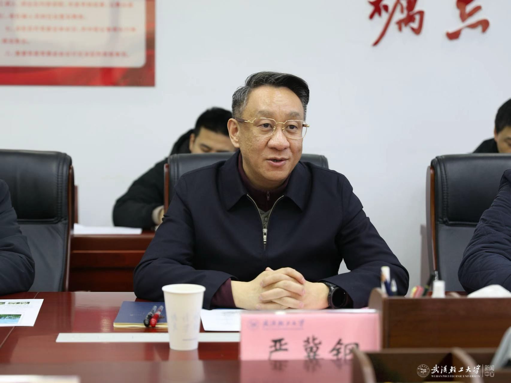 本网讯 2月5日上午,武汉市新洲区委书记苏海峰一行来校调研座谈。校党委书记严冀钢主持座谈会。校长汪海波、副校长丁华峰出席会议。
