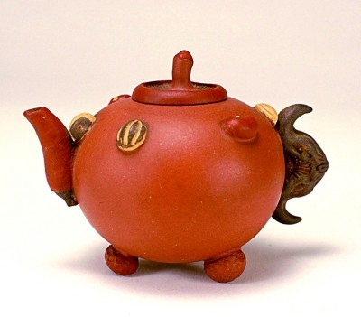 明代,水仙花和菊花两种花卉壶式样为宜兴紫砂壶所独有,可见初创时期的紫砂壶已开始逐步形成其特有的工艺风格。随着时代的发展,桂花、葵花、菱花、玉兰花等花卉壶,以及众多以瓜果为题材的紫砂壶相继出现,如故宫博物院藏清代“宜兴窑紫砂菱花式执壶”“宜兴窑紫砂百果壶”等便是其中代表,将宜兴紫砂壶推向“百花争艳,百果争香”的繁荣局面。
