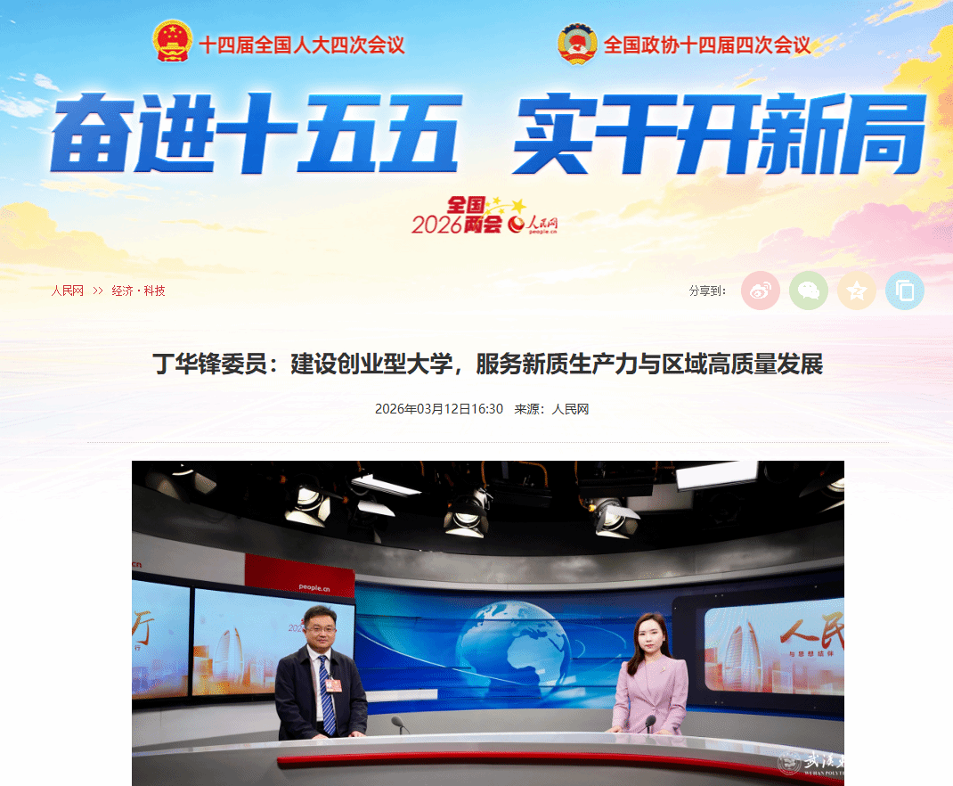 2026年全国两会期间,全国政协委员、武汉轻工大学副校长丁华锋做客人民网演播厅,围绕推动传统高校向创业型大学转型的建议进行分享。