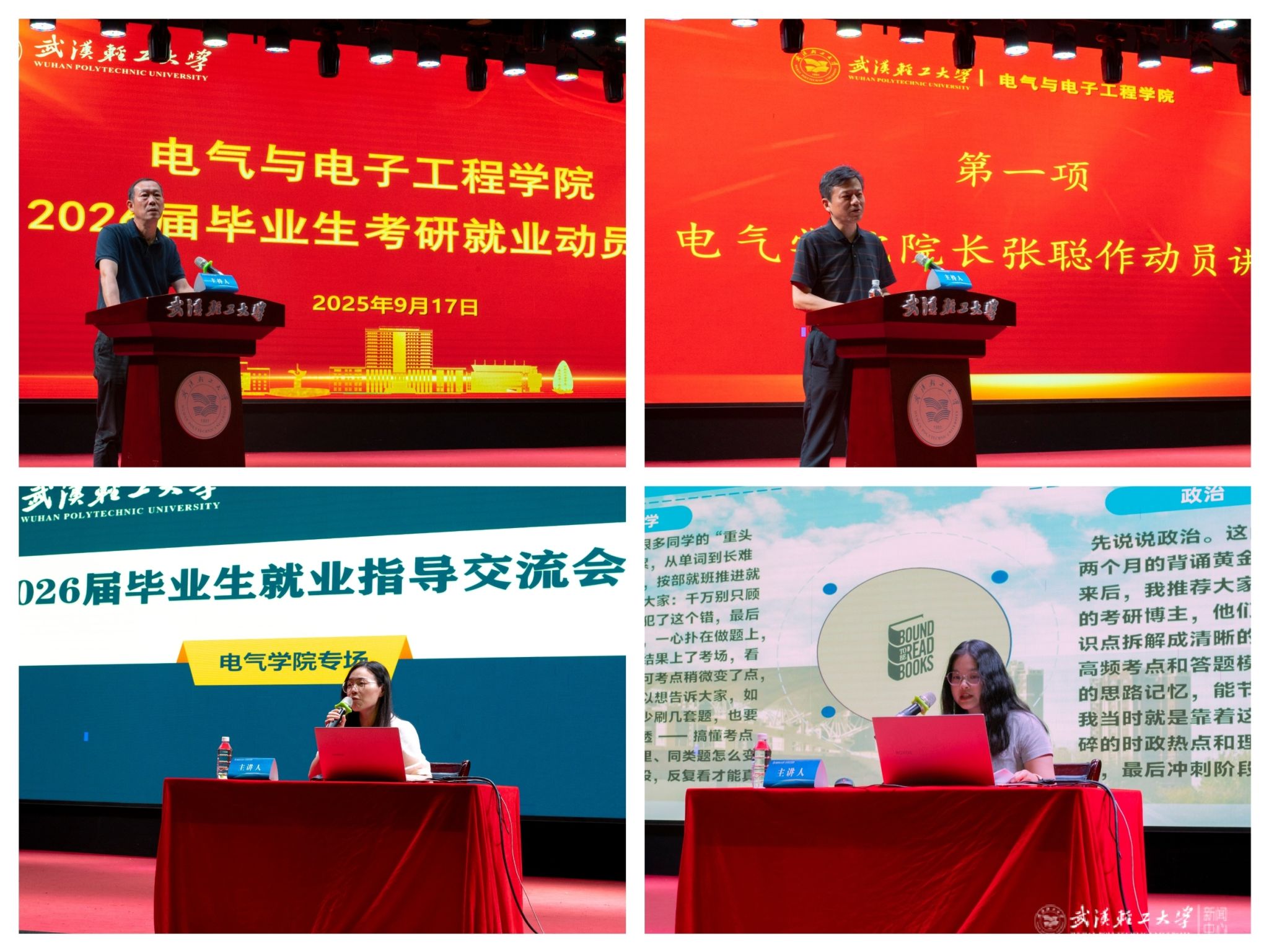 本网讯 9月17日晚,电气学院2026届毕业生考研就业动员大会在金银湖校区大学生活动中心三楼举行。学院领导班子成员、系部主任、毕业班辅导员及全体毕业生参加大会。会议由学院党委书记李启武主持。