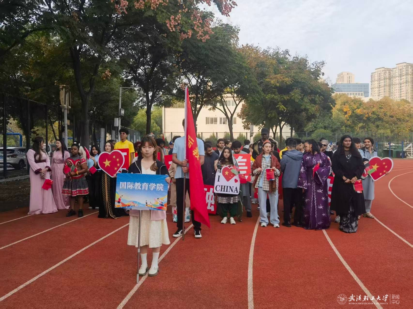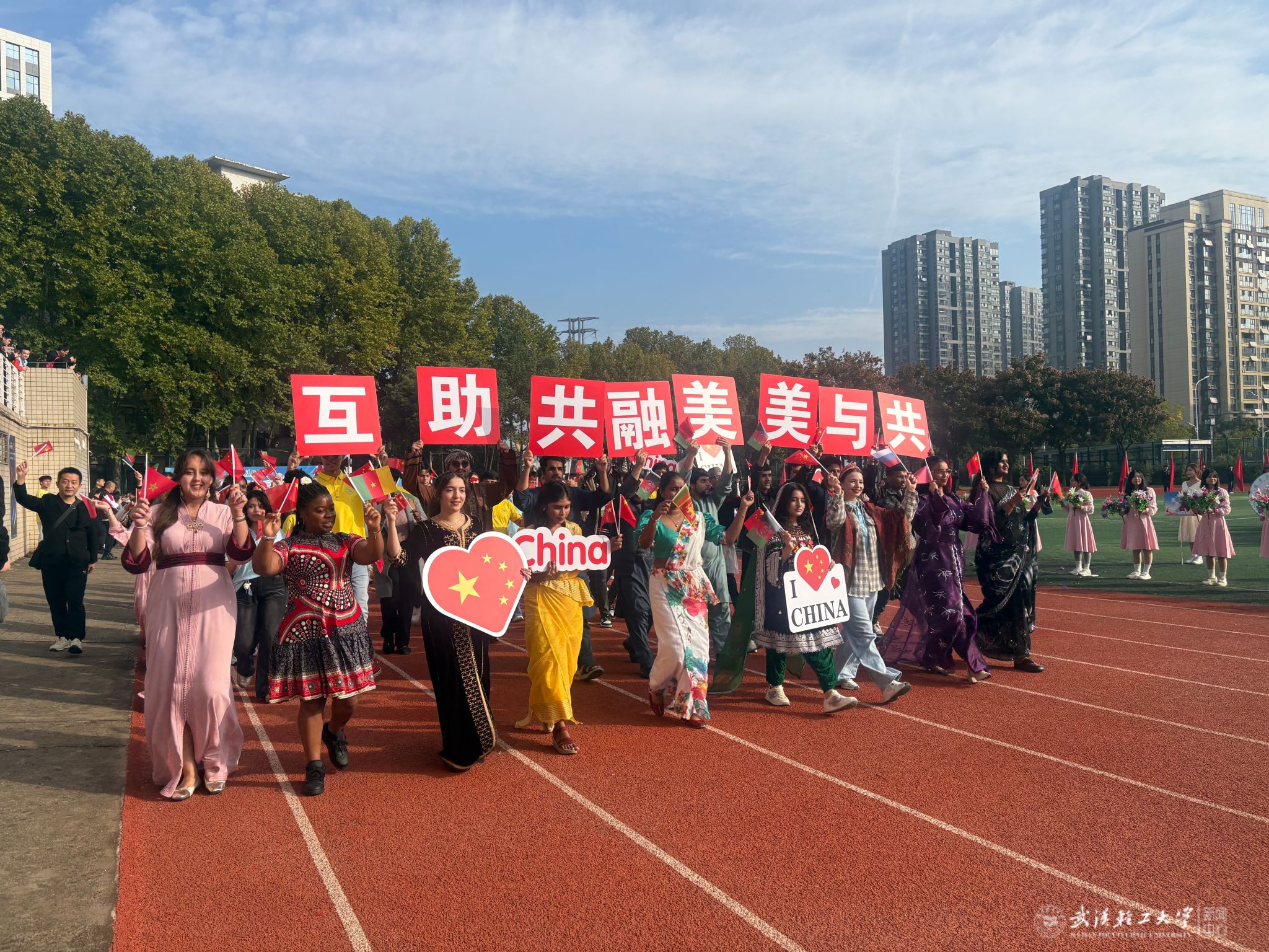 本网讯 10月31日,武汉轻工大学第四十三届体育运动会在金银湖体育场盛大启幕。开幕式上,由35个国家60余名国际学生组成的方队格外引人注目,他们以多元文化风采为盛会注入独特活力,成为现场一道亮丽的风景线。