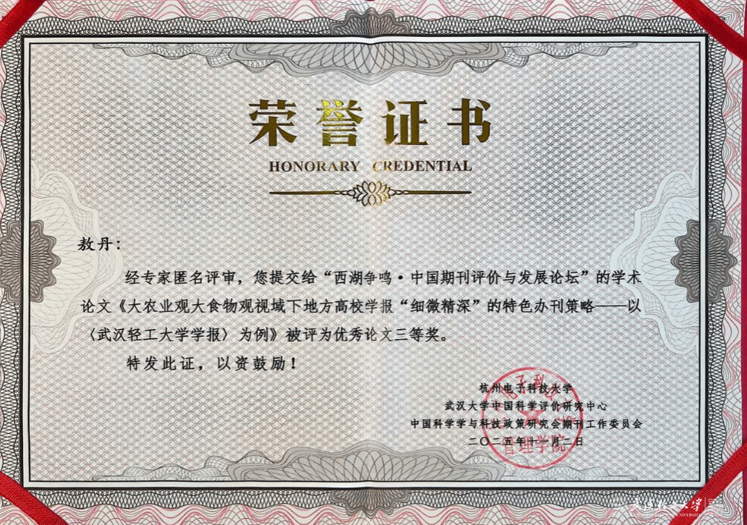 本网讯 为践行习近平总书记“加快培育世界一流科技期刊”“把论文写在祖国大地上”等系列重要指示精神,直面人工智能时代我国学术期刊发展的机遇与挑战,11月1日至2日,西湖争鸣·中国期刊评价与发展论坛在杭州隆重召开。来自国内具有影响力的学术期刊评价体系研发团队、期刊从业者、知名学者及相关专业师生齐聚杭州,围绕如何推动我国学术期刊高质量发展展开深度研讨,激荡思想火花。我校学报编辑部责任编辑敖丹受邀参会,并发表主题报告,相关成果获与会专家高度认可。