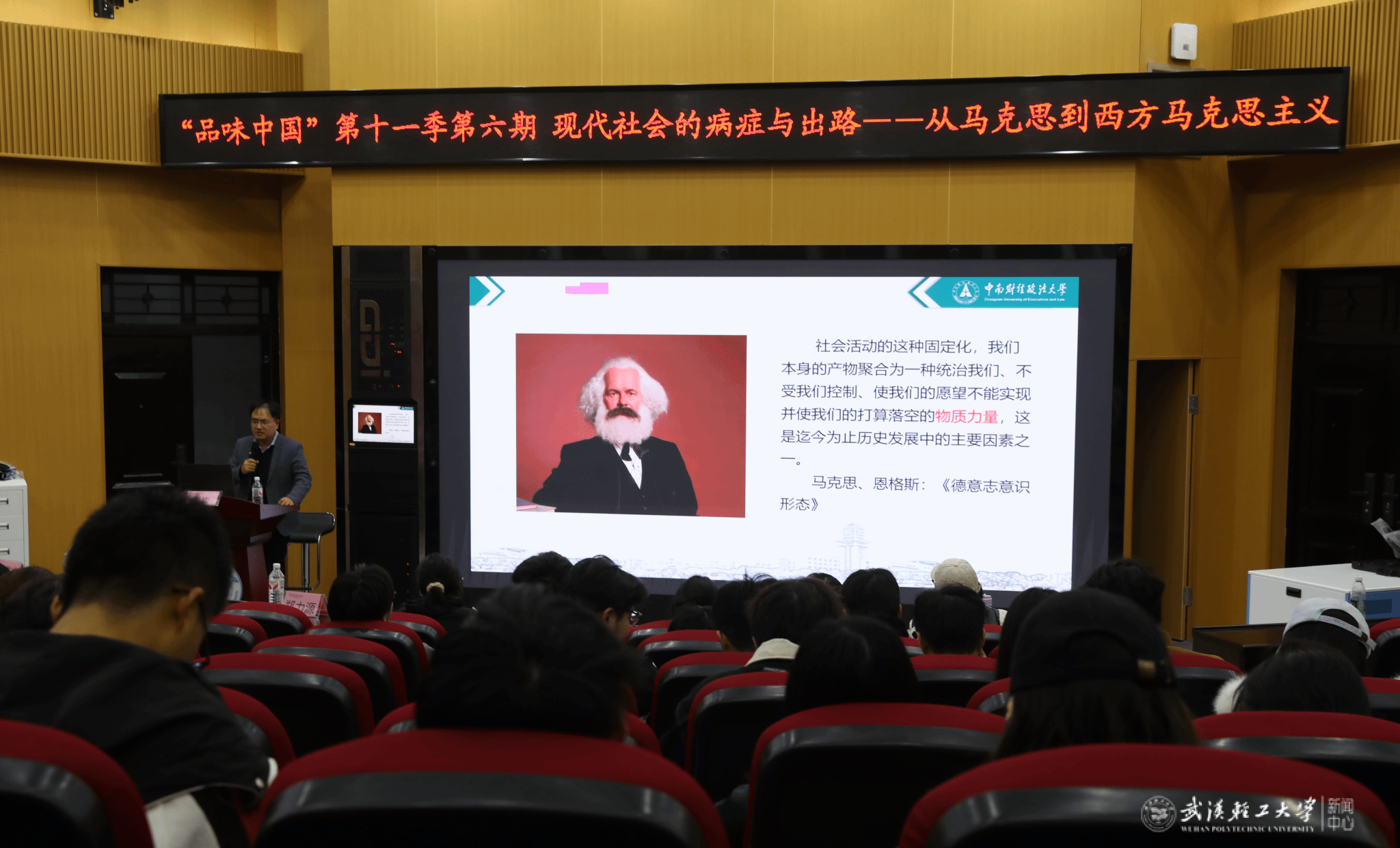 本网讯 为深入理解当今社会普遍存在的困惑,进一步发挥人的主观能动性,11月12日晚,中南财经政法大学哲学学院教授、博士生导师颜岩以“现代社会的病症与出路——从马克思到西方马克思主义”为题,做客“品味中国”第十一季第六讲,为200余名师生带来思想盛宴。讲座由课程负责人唐俊峰主持,马克思主义学院副教授杨华祥评议。