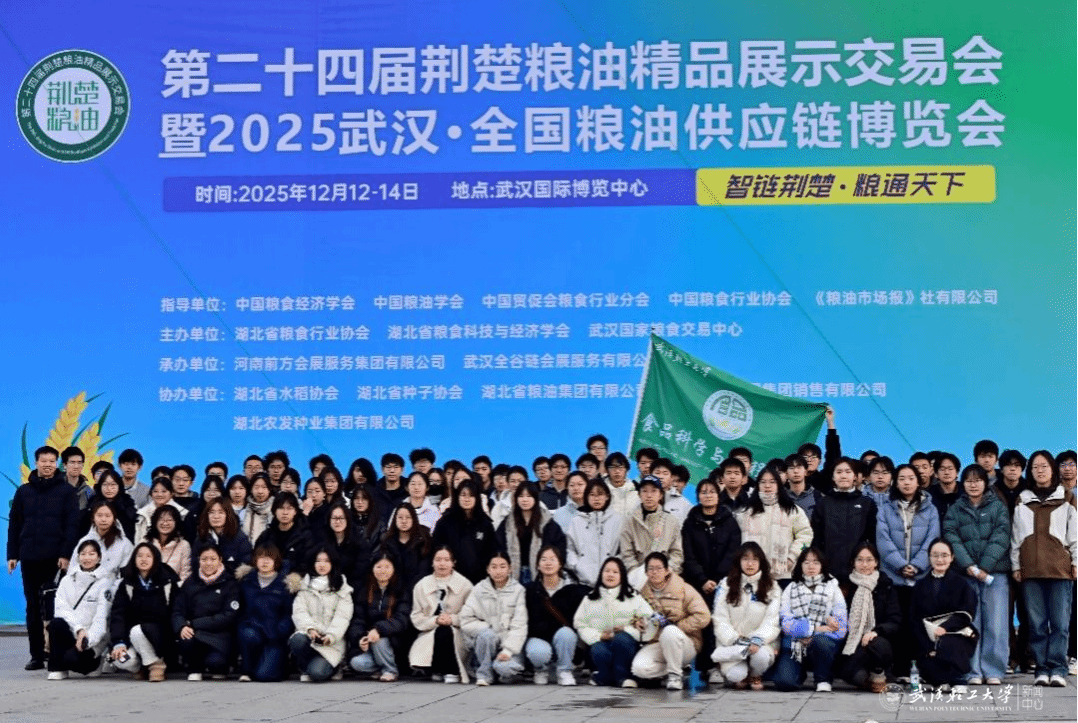 本网讯 12月12日至14日,第二十四届荆楚粮油精品展示交易会暨2025武汉·全国粮油供应链博览会在武汉国际博览中心举行。我校食品学院组织师生代表百余人,通过现场研学、行业交流与技术观摩等形式,深度参与此次行业盛会。