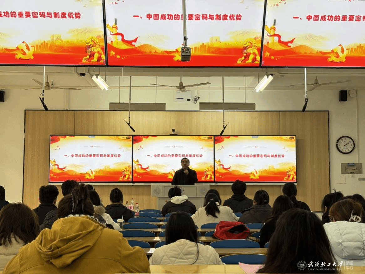汪德平教授以《中国未来五年怎么干?——党的二十届四中全会擘画发展蓝图》为题,围绕全会审议通过的《中共中央关于制定国民经济和社会发展第十五个五年规划的建议》展开系统解读。他从“一张蓝图绘到底”的制度优势切入,深刻阐明“十五五”规划是开创中国式现代化建设新局面的行动纲领,勉励全体研究生胸怀“国之大者”,主动将个人研究方向、职业规划与国家战略需求同频共振,在接续奋斗中贡献青年智慧与力量。