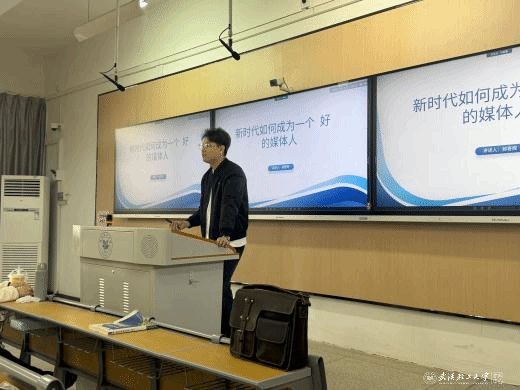 1月6日,系列讲座迎来收官之讲。全国十佳记者、湖北广播电视一级记者郝晋辉以“新时代,怎么成为一个好的媒体人”为主题,为大一新生量身定制成长指南。讲座紧扣“十五五”发展规划与技术变革趋势,他重点强调,新时代媒体人应锚定新质生产力发展需求,以优质内容回应全球对中国创造的关注。他结合AI制作视频实例,提醒学生既要掌控工具属性,更要夯实基本功、坚守原创核心。此外,他还拆解了新时代媒体人须具备的跨界协同、信息甄别、灵活思维三大核心素养,并以全局视角强调协同意识的重要性。