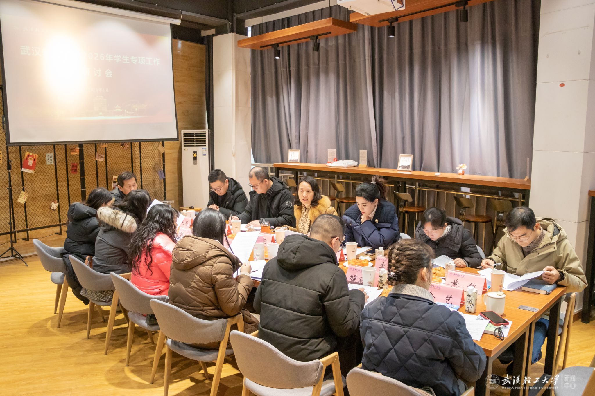 本网讯 1月27日,我校在金银湖校区砺志楼311会议室及“一站式”学生社区轻悦茶空间,举办2026年辅导员工作室申报交流会与学生专项工作研讨会。校党委副书记、副校长金艳出席会议并讲话,学工部(处)负责人、各学院党委副书记及全体辅导员参加会议。