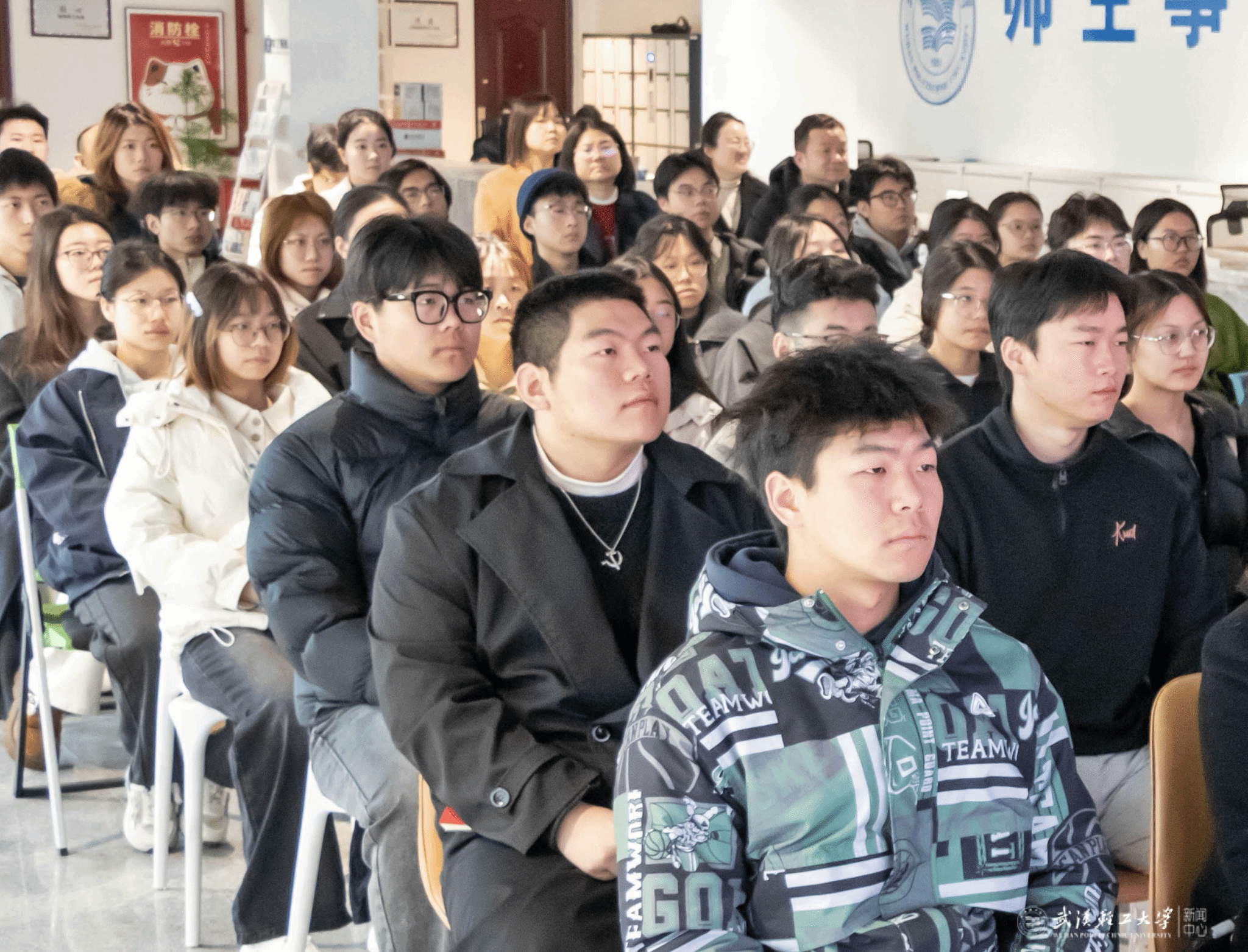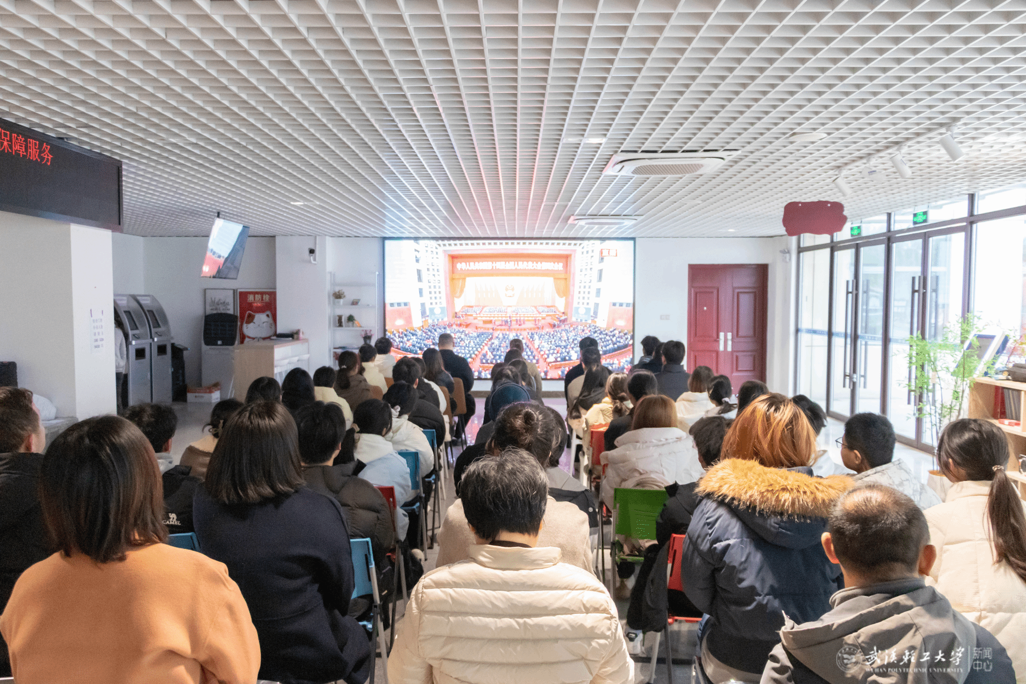 本网讯 为深入学习贯彻全国两会精神,引导青年学子坚定理想信念,厚植家国情怀,3月5日上午,学工部(处)、校团委组织“卓越之星”、校院学生组织成员、各学院的学生党员及班团骨干等50余名学生代表,在金银湖校区“一站式”学生社区师生服务大厅集中收看了十四届全国人大四次会议开幕会。学工部(处)、校团委全体成员参加活动。