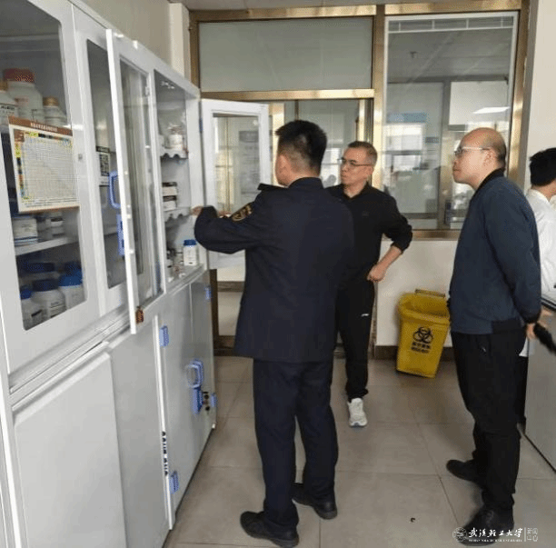 理论培训结束后,蒋豪教官带领学院实验室安全管理团队,深入学院部分重点实验室,对危化品存放、用电规范等进行了专业、细致的安全检查,并就发现的问题现场提出整改建议。