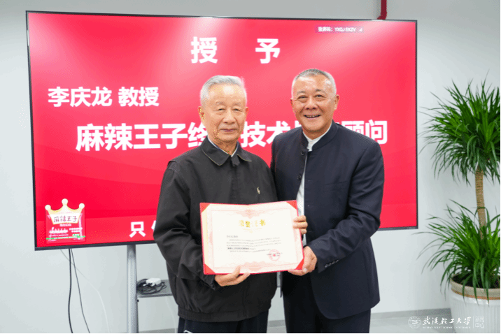 为致谢李庆龙教授多年来的战略指导与无私支持,麻辣王子举行授聘仪式,张玉东为李庆龙教授颁发证书,正式聘请其为“麻辣王子终身技术战略顾问”。