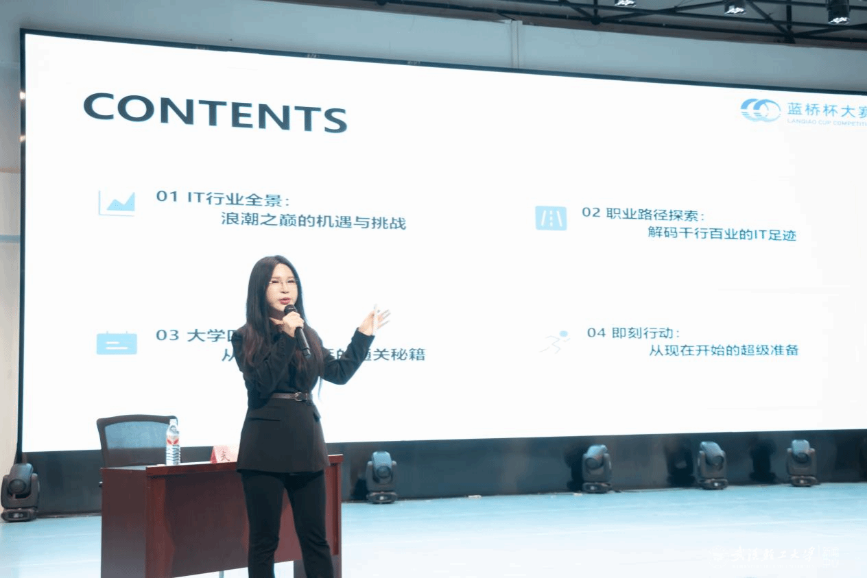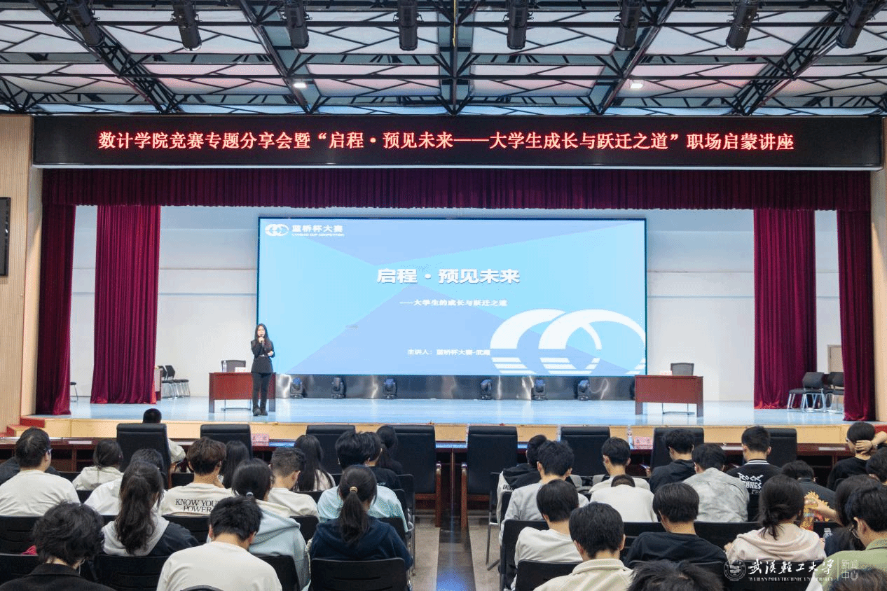 本网讯 为帮助大学生更好应对当前就业形势,提升职业规划能力与就业核心竞争力,切实推动人才培养与产业需求深度对接,4月16日,数计学院在常青校区大学生活动中心举办就业护航计划职场启蒙专题讲座。蓝桥杯大赛组委会副秘书长姜兆军,数计学院党委副书记黄铠、副院长李皞出席,特邀蓝桥杯大赛就业服务部武霞担任主讲,本次活动吸引了500余名大一学子到场。