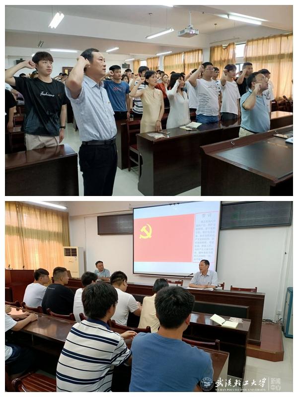 在罗文森带领下,七十多名新发展的学生党员面对鲜红的党旗,紧握右拳,以昂扬的斗志和饱满的热情,铿锵有力地宣读了入党誓词。短短一百多字的誓词是他们对党的承诺,更是他们的责任。
